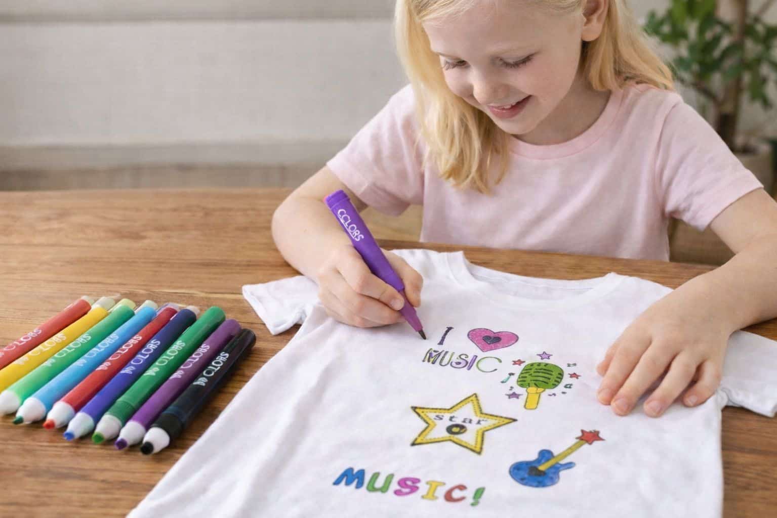 Bardzo wygodne narzędzie, zwłaszcza do detali, konturów i drobnych napisów. Markery tekstylne mają cienką końcówkę, więc pozwalają rysować precyzyjne linie. Zawierają pigment odporny na spieranie (po utrwaleniu żelazkiem). Są szybkie i łatwe w użyciu, choć mają mniejszą paletę kolorów i zwykle słabsze krycie niż farby akrylowe.