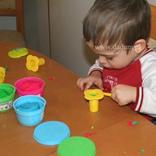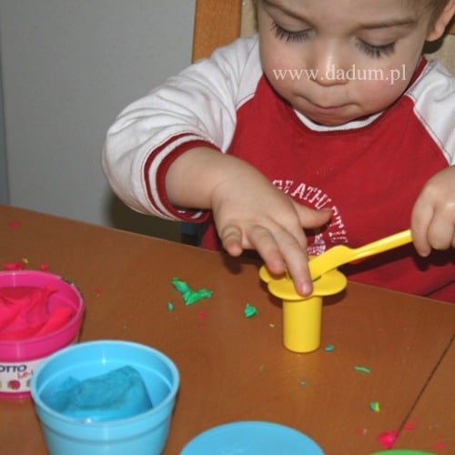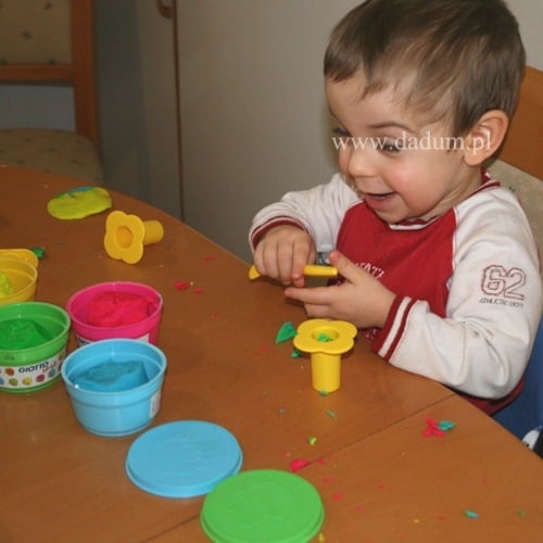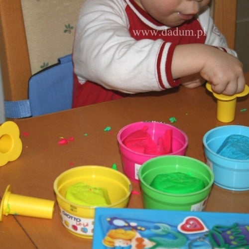 Masa do modelowania to doskonałe ćwiczenie palców małego dziecka.