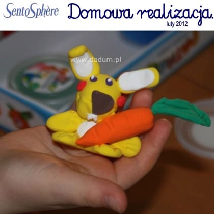 Oto wczorajsza praca córki (7 lat): zajączek z masy do modelowania Patarev francuskiej marki Sentosphere. Bardzo udane zwierzątko, będziemy do tego wracać przed Wielkanocą 🙂